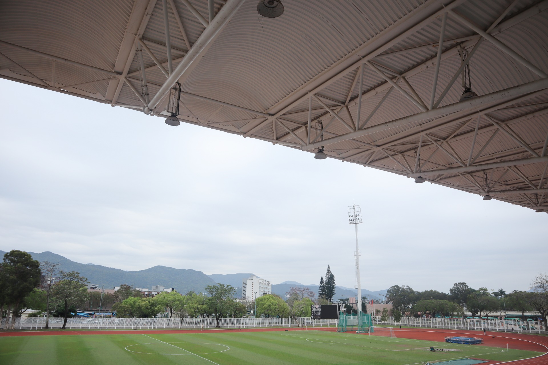 西貢鄧肇堅運動場鄰近巴士及小巴總站,交通便利。運動場的看台上蓋呈波浪形,極具特色。學校時常會在此舉行運動會。